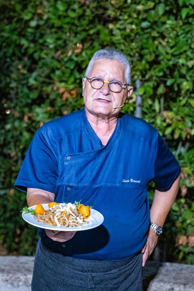 Ricordiamo la pietanza – compendio di quasi tutte le materie prime del Gal Tirrenico, congegnata dal maestro chef Lucio Bernardi, che ha voluto rivolgere un pensiero a tutti i produttori eccellenti di queste zone: da Basicò con la sua Provola a Castroreale con il suo olio e pasta artigianale, da Barcellona con i suoi pomodori e le sue marmellate ad Oliveri con il suo vino alle nocciole di Fondachelli Fantina. Apprezzamento a tuttotondo di tante personalità intervenute: dagli amministratori dei tanti comuni ad altri importanti personaggi delle Eolie verso l’organizzazione della serata esclusiva e del tour. Gradito anche l’intrattenimento musicale con Rossano Giorgi – chitarra. A gestire la conduzione degli approfondimenti di ogni tappa e del singolo Cooking show è la giornalista Marcella Ruggeri.