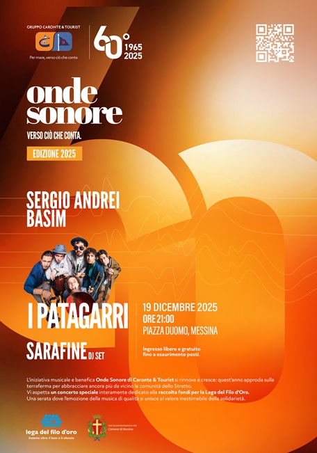 “Per noi la musica è da sempre il modo più autentico per unire le persone e sostenere chi ha bisogno”, dichiara Tiziano Minuti, Responsabile della Comunicazione e del Personale del Gruppo Caronte & Tourist. “Con questo nuovo appuntamento di Onde Sonore vogliamo creare una vera marea di emozioni e solidarietà, continuando a offrire alla città momenti di divertimento e condivisione”.