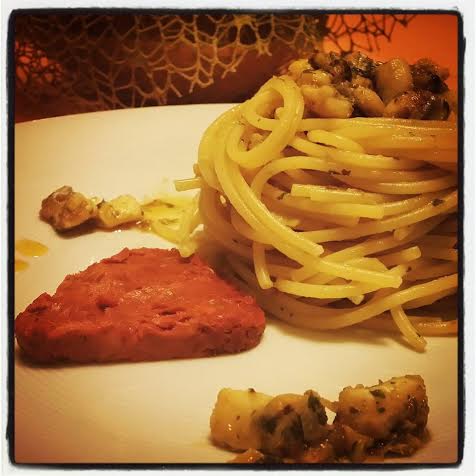 Solitamente valorizzato “panato e fritto” o in triste alternativa ipocalorica panato al forno, qui viene proposto con la solita base di scalogno, appena saltato in un filo d’olio caldo, con prezzemolo ed un delicato e profumatissimo patè di pomodori secchi della ditta “Virgona” di Salina, di cui ringrazio le manine sante della mitica Daniela Virgona!