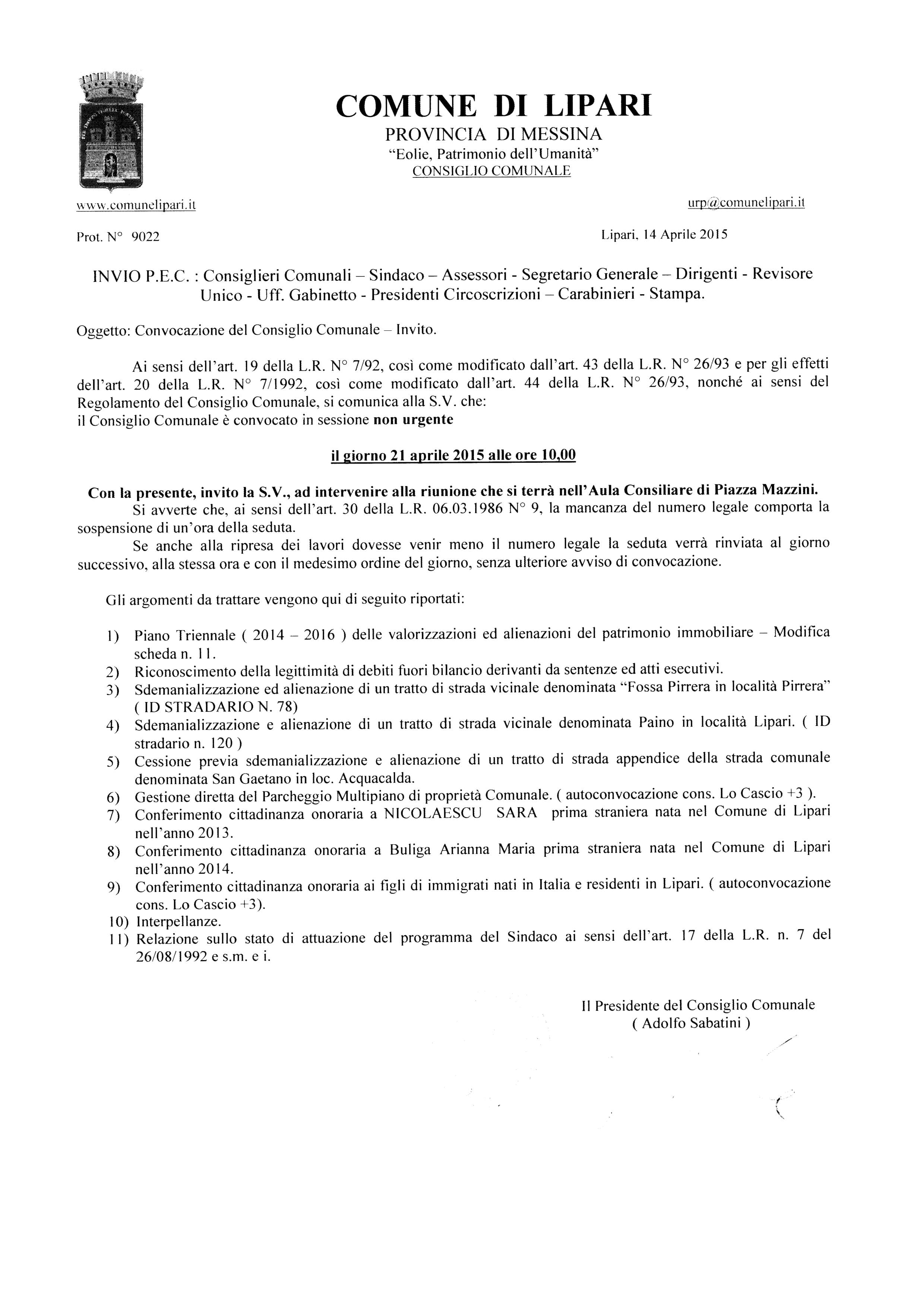 Lipari- Convocato il Consiglio comunale per il prossimo 21 aprile alle 10,00. All’ordine del giorno, in particolare al primo punto, la modifica della scheda n° 11 del piano della valorizzazioni e alienazioni immobiliari ai fini della locazione degli appartamenti ex Polizia Municipale ai Carabinieri. Tolti stavolta dalla discussione i capannoni abusivi per i quali si chiede il riconoscimento o meno di pubblica utilità.