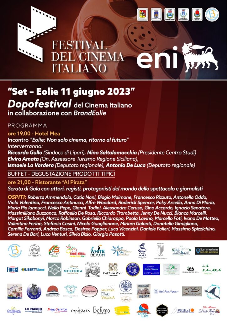 “ Eolie : non solo cinema, ritorno al futuro” è il tema dell’incontro, promosso dal Festival del Cinema Italiano in corso a Milazzo ( 7-10 giugno) e Brand Eolie, società operante nel settore del marketing turistico, nell’ambito della manifestazione “Set-Eolie” che si svolgerà domenica 11 giugno, alle 19,00, a Lipari, nello splendido scenario dell’Hotel Mea.