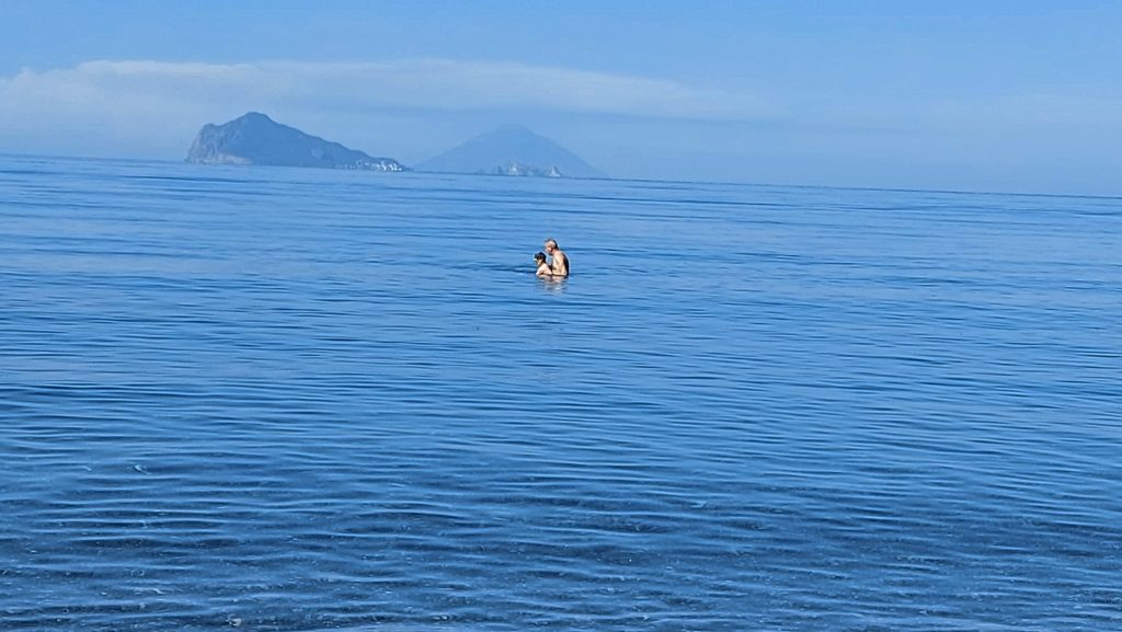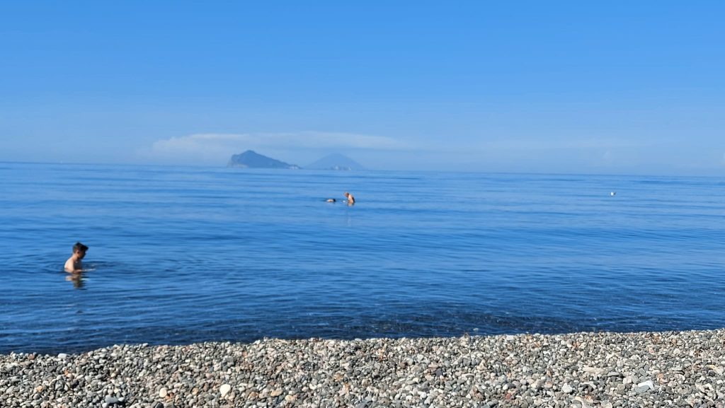 Domenica estiva e primi bagni alle Eolie in un mare stupendo, dal colore cristallino e con temperature piacevoli anche per l’assenza di vento. Nelle foto l’affollata spiaggia di Unci a Lipari che quest’anno offre un’attrattiva per gli amanti dello snorkeling : la scogliera soffolta in massi naturali , ultimata lo scorso settembre per proteggere la zona dai marosi, è già ricoperta dalla vegetazione e ricca di pesciolini. In alcuni tratti si può anche stare in piedi come sedersi e rilassarsi in mezzo al blu…