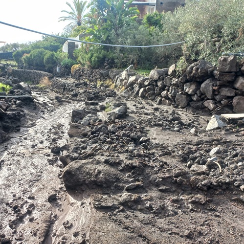 In tarda mattinata sono bastati poco più di dieci minuti di pioggia, neanche molto intensa, per riportare la minuscola frazione di Ginostra ai disagi vissuti lo scorso inverno. Fango e detriti alluvionali hanno invaso alcune stradine per poi riversarsi violentemente in mare. Risultano parzialmente impraticabili tratti della via San Vincenzo e della stradina che conduce all’approdo. Inoltre, lo storico scalo del Pertuso si ritrova nuovamente ostruito dal fango. Ad esondare il Torrente Mastro Giovanni e i torrenti Serro Lazzaro e Mancuso.