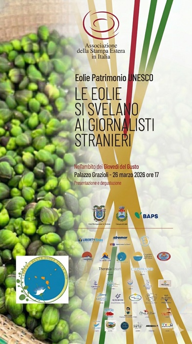 Il prossimo 26 marzo, nella prestigiosa cornice di Palazzo Grazioli, si terrà un appuntamento dedicato alla promozione delle eccellenze Eoliane: “Il Giovedì del Gusto”, un incontro che vedrà la partecipazione della stampa estera e degli operatori del settore enogastronomico e turistico.