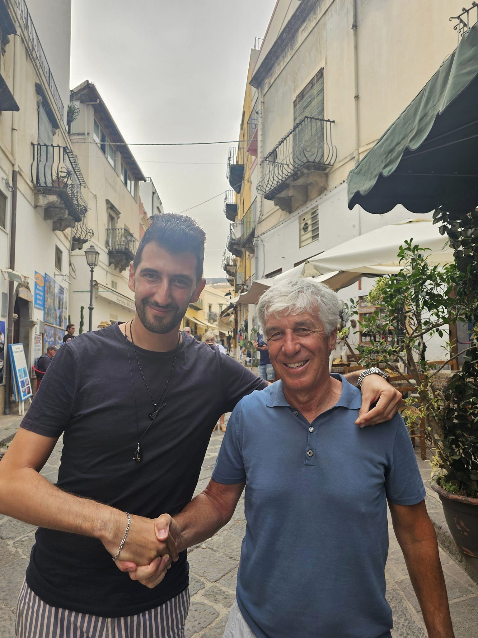 Vittorio Pavone , l’acchiappavip eoliano, trova anche Gian Piero Gasperini. L’allenatore dell’Atalanta , fresca vincitrice dell’Europa League, si trova in vacanza nell’arcipelago e sta scoprendo la bellezza delle vie centrali di Lipari ( nella foto in via Garibaldi). Pavone, juventino sfegatato, lo avrebbe visto bene tornare nuovamente alla Vecchia Signora ma il futuro non si può mai sapere…e intanto Vittorio prepara il prossimo “colpo”…