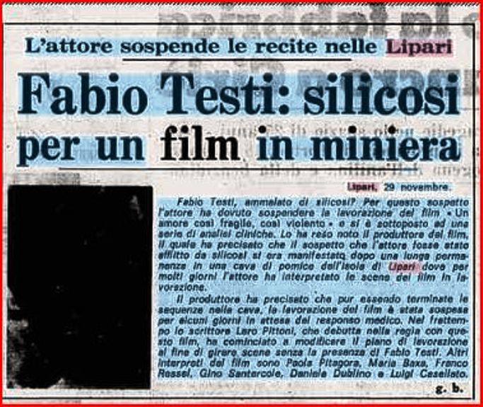 Stampa Sera 29.11.1972. Problemi per Fabio Testi sul set del film ” Un amore così fragile così violento” e  alcune comparse liparesi