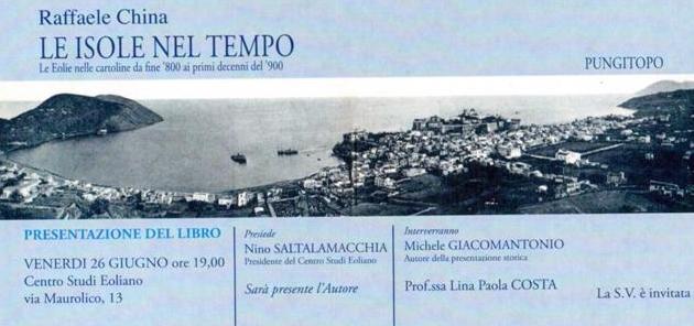 Questo bel lavoro di Raffaele China – che molti hanno potuto ammirare in anteprima la scorsa estate nella mostra delle cartoline allestita presso il Centro Anziani G.Cisabella – rappresenta indubbiamente un contributo importante alla conoscenza ed alla promozione delle Eolie ma anche una documentazione, per gli eoliani, di un mondo che va scomparendo in un cambio d’epoca radicale, forse il più profondo che hanno vissuto le isole emerse dalla terribile “ruina” del Barbarossa.