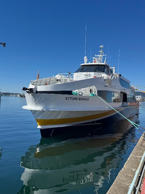 È arrivata ieri nel porto di Trapani la nave ibrida veloce Ettore Morace, al termine del trasferimento dalla Spagna, dove è stata varata a seguito del completamento della costruzione presso il cantiere Astilleros Armon.