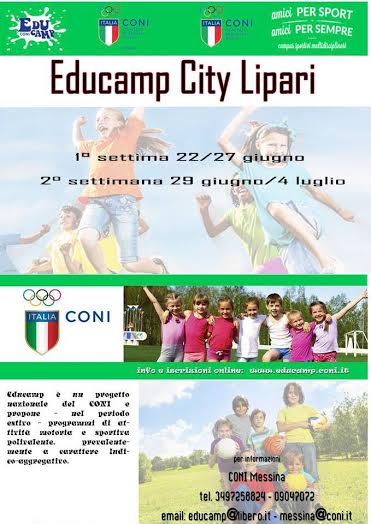 Lipari- Il 17 giugno 2015 alle ore 11.00 presso l’aula consiliare del Comune di Lipari è convocata una conferenza stampa di presentazione del progetto nazionale del CONI , Educamp edizione 2015.