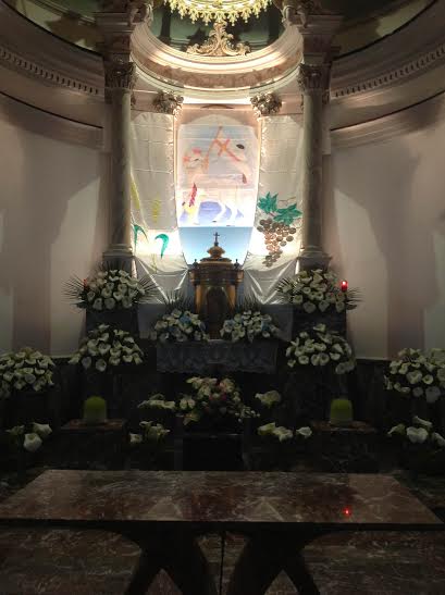 ( wikipedia) L’altare della reposizione è il luogo in cui, nella liturgia cattolica, viene riposta e conservata l’Eucaristia al termine della messa vespertina del Giovedì santo, la Messa nella Cena del Signore (in Cena Domini). La liturgia cattolica prevede che l’altare della reposizione non coincida con l’altare dove si celebra l’Eucaristia. È inoltre tradizione che nelle chiese l’altare della reposizione sia addobbato in modo solenne, con composizioni floreali o altri simboli, in omaggio all’Eucaristia, che viene conservata in un’urna, detta repositorio, per poter permettere la Comunione nel giorno seguente, il Venerdì santo, ai fedeli che partecipano all’Azione liturgica della Passione del Signore; infatti il Venerdì santo non si offre il Sacrificio della Messa, e dunque non si