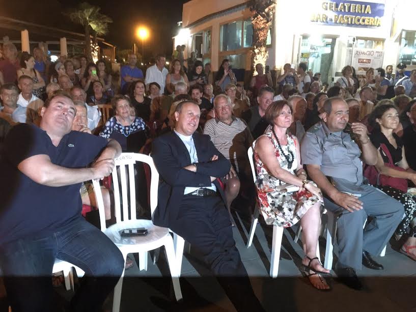 Vulcano- Un’altra bella serata di solidarietà nell’isola grazie al premio annuale organizzato dalla parrocchia con l’aiuto degli sponsor. Un piccolo contributo è stato devoluto alla squadra di calcio del paesino di 1500 anime di Pieve Torina, nelle marche, distrutto ( quasi totalmente inagibile) dal terremoto. La serata nella piazza del porto, piena di gente, condotta dal giornalista Rai Fabrizio Frullani, ha visto la partecipazione della madrina Maria Grazia Cucinotta, della presentatrice Rai, Eleonora Daniele, del dott. Luciano Sale di Wind e dell’imitatore Gennaro Calabrese.