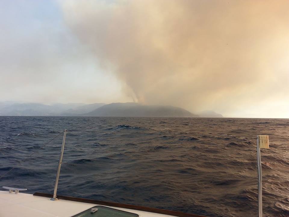 L’incendio nel pattese visto dal mare delle Eolie – foto Nicoletta Graziano