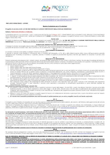 Per informazioni rivolgersi alla Pro Loco Isole Eolie di Lipari che ci ha inviato il bando sottostante ( ci scusiamo per la scarsa definizione del file)