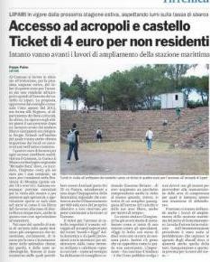 Il probabile pagamento di un ticket d’ingresso di quattro euro, come deliberato nell’agosto 2012, dal Consiglio comunale di Lipari ( di cui vi informiamo a parte) per accedere al Castello, dalla prossima stagione estiva, sulla Gazzetta del Sud di oggi.