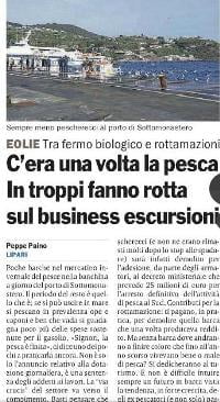 Le buone notizie sul tribunale dopo il pronunciamento della Commissione giustizia, favorevole, al ritorno delle sezioni distaccate a Lipari come a Ischia e Portoferrario, le preoccupazioni sul futuro dell’ospedale che rientra nel piano nazionale dei tagli ministeriali e la fine della pesca alle Eolie, tra fermi biologici e rottamazioni, sulla Gazzetta del Sud di oggi.