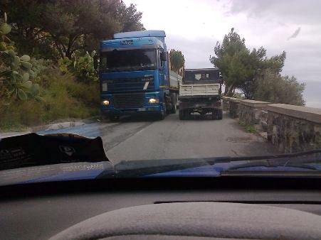 1959278_10202586363933494_139663049_nLipari- Prosegue lungo la via Serra il transito di mezzi pesanti (nella foto di Lucio Raffaele la situazione alle 11,30) anche oltre il tonnellaggio consentito per attraversare le strade provinciali. Inevitabili le file di auto specie in prossimità dei punti di parcheggio delle autovetture dei residenti.